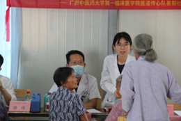 在医生们用自己精湛的医术为居民们解决难缠的问题时,“医道传心”志愿者服务队的医学生志愿者们用他们专业所学,为居民提供了推拿、品花茶、艾灸、量血压、贴耳穴等中医基础医疗服务。活动全程以粤语作为基本沟通语言,方便与居民交流,提高服务质量及居民对中医药文化的认识。在一言一语当中,能感受到居民对于中医保健都有着很大的热情,居民们也在义诊的途中表达并给予了志愿者们充足的信任,频频向志愿者们竖起大拇指。居民们大部分有定期检查和锻炼身体的习惯,从他们对身体的重视,可见他们对于健康身体的期盼。