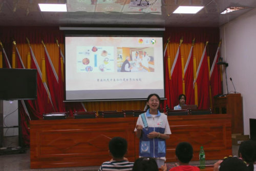 宣讲团成员杨梦媛为广东省江门市江海区雄乡村当地学生