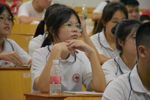 中学生们认真聆听邓老全力救治患者的故事