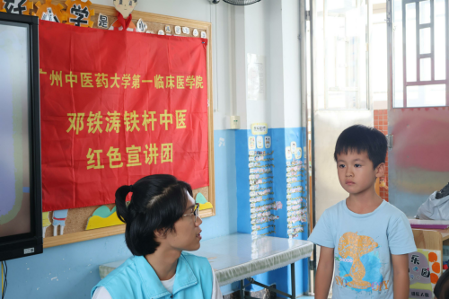 在广东省江门市开平市,宣讲团成员何芊桦在月山镇月山中学宣讲了邓铁涛救治重症肌无力儿童的故事,向中学生们再现了邓老竭尽所能为患者提供帮助的济世情怀;在在广东省云浮市罗定市,邓铁涛秉承红色精神不忘初心的故事被靳塽向凤塘村的小朋友们娓娓道来;在广东省江门市江海区,杨梦媛为雄乡村当地学生形象再现了邓铁涛挺身上书、振兴中医的大医风范;在广东省梅州市平远县,八尺镇的小朋友们在何钰禾的热情讲述中被邓铁涛悬壶救世、无私奉献的精神所深深感动;在广东省汕头市澄海区和潮州市饶平县,刘诗琳分别为东里镇和海山镇的当地小学生们深情讲述了邓铁涛义洒杏林、铁杆中医的毕生追求……