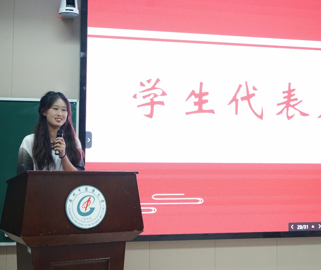 此后,学生代表杨格同学在讲话中表示了对拜师学习机会的珍视与感恩,同时表明虚心求教、认真学习的决心。