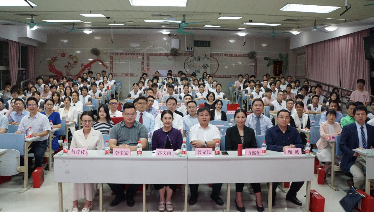 2023年10月16日晚,广州中医药大学yl23455永利官网2022级中医学八九年制班、铁涛班拜师大会在大学城校区综合楼101教室举办。广州中医药大学教务处处长曾元儿、yl23455永利官网党委副书记郭文海、教学处处长方熙茹、学工办副主任李肇宏、教学处老师以及学业导师35人、学生117人参加本次拜师大会。