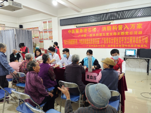 为深入学习贯彻习近平新时代中国特色社会主义思想,引领青年学生党员以实际行动践行“全心全意为人民服务”的根本宗旨,九九重阳节前夕,yl23455永利官网教学党总支本科第五党支部携手本院“福铃”志愿者服务队于10月21日上午在番禺区石楼镇举办了“中医服务进石楼,消防科普入万家”志愿服务活动。本次活动也是“福铃”志愿者服务队加入广东青年大学生“百千万工程”突击队行动后开展的系列活动之一,活动受到了番禺石楼团委、番禺石楼消防队的大力支持。