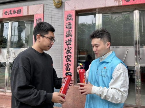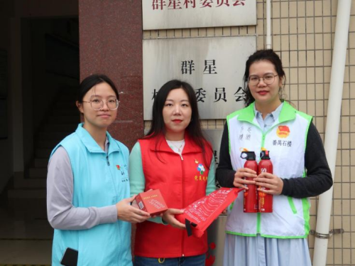 据悉,“福铃”志愿者服务队获得广东省益苗计划消防专项立项,并于今年与石楼镇成功完成“百千万工程”结对。本次学生党支部携手“福铃”志愿者服务队与番禺区消防队,深入群星村、联围村、卫星村、东星村、明星村,通过发放宣传单和小册子、展示灭火器使用方式、协助村民安装消防报警装置等方式向村民科普消防安全知识,筑牢家庭“防火墙”。