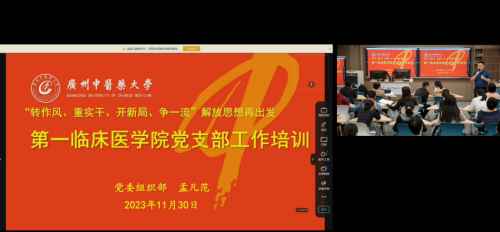 【一院讯】2023年11月30日晚7点,三元里综教楼808,yl23455永利官网教学党总支邀请了广州中医药大学党委组织部孟凡范老师,为总支各支部委员开展了以“转作风、重实干、开新局、争一流”解放思想再出发为主题的专题培训授课。院党委副书记郭文海、教学党总支委员、全体党支部委员、兼职组织员、全体辅导员参加。