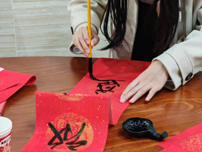 这场新春活动,不仅是一场欢乐的聚会,更是一场文化的盛宴。主办方精心策划了剪纸与书法对联体验活动,让师生们在动手的过程中,深入感受中华优秀传统文化的魅力。学生们剪裁着红纸,书写着对联,一笔一划都充满了对传统文化的热爱和敬仰。这些对联和剪纸作品,不仅装点了现场,更传递出了浓浓的年味和文化气息。