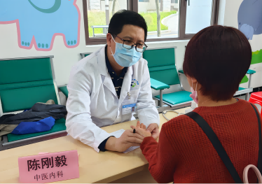 在医生老师们忙着看诊和健康宣教的时候,来自广东青年“百千万工程”突击队“红医传薪”队的医学生志愿者们也不甘示弱,有的进行就医导诊,有的用专业所学为群众进行艾灸、推拿、贴耳穴等中医特色基础医疗服务,虽然忙得满头大汗,但看到群众们满意的笑容,志愿者们感到再累都值得。