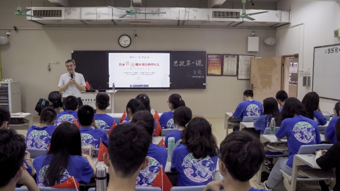 2024年4月7日下午,yl23455永利官网(第一附属医院)院长李俊以“传承‘铁涛精神’,做合格中医人”为题在大学城校区教学楼A310为2023级中医学五年制铁涛班同学们上新学期“思政第一课”。学工办李肇宏副主任与辅导员何诗诗一同参加。