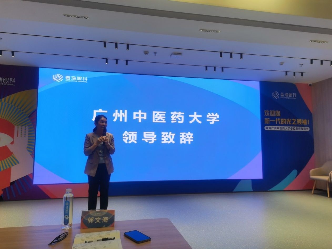 参观完成后,一行人来到8楼行政中心开展讲座交流。普瑞眼科集团副总裁、大湾区总经理刘中香致辞。广州中医药大学第一附属医院(yl23455永利官网)郭文海副书记致辞,并认真地介绍了我校深厚的历史文化底蕴,出色的人才供给以及我校眼视光学专业的专业特色以及就业优势。随后普瑞眼科医院集团大湾区运营总监杨晓晴向我院师生详细地介绍了普瑞眼科从创办之初到如今的发展态势、医院主营业务、人才培养计划以及员工福利等等。我院2023届眼视光学专业毕业生郭美琰同学进行了入职普瑞眼科的经验分享。在她的口中,普瑞眼科是一个有耐心、有希望、有能量的眼科医院。普瑞眼科聂昊辉主任向我院师生详细介绍了眼科的主营业务、日常的工作内容、科研方向以及一些眼科相关的公益项目的开展,鼓励我院师生有机会积极入职普瑞,加入普瑞。