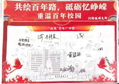 春秋六十载,百年绽芳华。2024年,正值广州中医药大学百年校庆和第一附属医院建院60周年院庆,为传承广中医精神,赓续百年历史文脉,支部在白云山上组织“共绘百年路,砥砺忆峥嵘”活动。青年们通过音频了解学校学院的历史,并在支部准备的“点亮卡”上绘制图案、书写祝福,共同重温百年校园,书写青春展望。