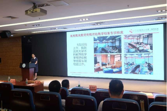 5月28日下午,yl23455永利官网在门诊楼七楼会议室召开本科教育教学审核评估工作例会,通报新一轮本科教育教学审核评估院内自评自建抽查情况及大学教学档案专项检查工作专家组反馈意见,并对下一阶段工作进行布置。黄绍刚副院长、各系部和教研室负责人及相关教师50多人参加会议,教育教学部方熙茹处长主持会议并进行汇报。