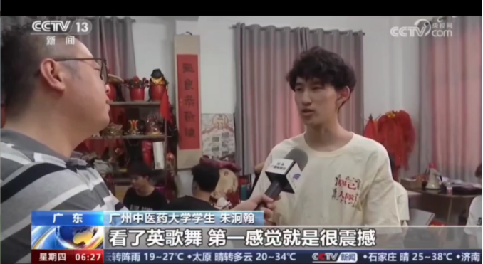此行亮点之一,是朱泂翰同学接受汕头电视台采访,其声音跨越地域限制,通过央视频道传播,不仅扩大了广州中医药大学“百千万工程”突击队行动的社会影响,更为胶己人队传承与弘扬英歌文化的努力赢得了更广泛的文化关注与公众认可,展现了青年学子在非遗保护中的积极作用。