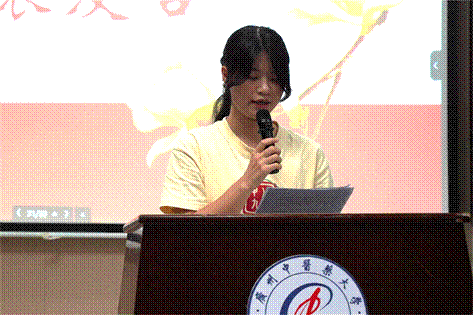 紧接着学生代表匡雯同学上台发言,在发言中,她代表全体同学表达了对领导老师的感激之情以及对于未来从事中医药事业的坚定决心,现场气氛热烈。