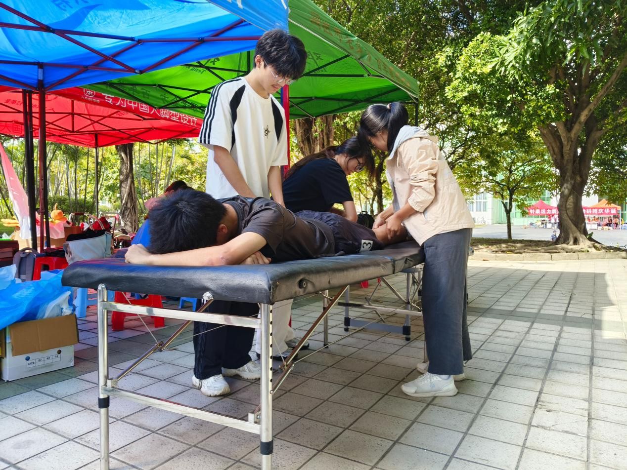 非凡的团结力,源自每一位一院成员。微风轻拂,阳光正好,虽带着一丝凉爽,但运动场的氛围却温暖如春:志愿者们紧随运动员步伐,细致入微地做好各项后勤支持,工作人员精心准备了温馨的热水、鲜甜的水果与能量满满的巧克力,一院院青年志愿者,生命缘社团的成员们在休息区耐心地为运动员们进行肌肉放松,各班级的同学们在观众台上,以最激昂、最鼓舞人心的加油声,为赛场上的健儿们助威……每个人都在用自己的方式,传递着对学院这个大家庭的深情厚谊与无限热爱。