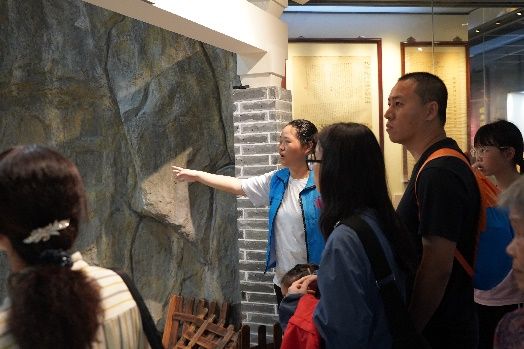 (志愿者为校友介绍博物馆)