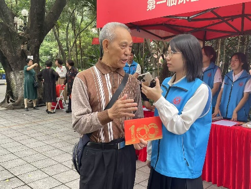 一位1956级的老院友及其家人的到来,更是触动了在场每一个人的心弦。尽管老先生年事已高,但精神矍铄。当志愿者上前确认其身份后,满怀敬意地递上了精心准备的校庆纪念品。老先生的家人激动地接过礼品,眼中泛着泪光,连声道谢。这一幕,不仅展现了老一辈院友对母校的深厚情感,也彰显了当代学子对前辈的崇敬与尊重。在交流过程中,老先生的家人感慨万分,他们表示,能够在这个特殊的日子里回到母校,与曾经的老师和同学共聚一堂,感受百年学府的魅力与风采,是人生中的一大幸事。临别之际,他们深情地说:“祝母校越来越好!”这句话,不仅是对母校未来发展的美好祝愿,更是对一代代学子共同心愿的深情表达。