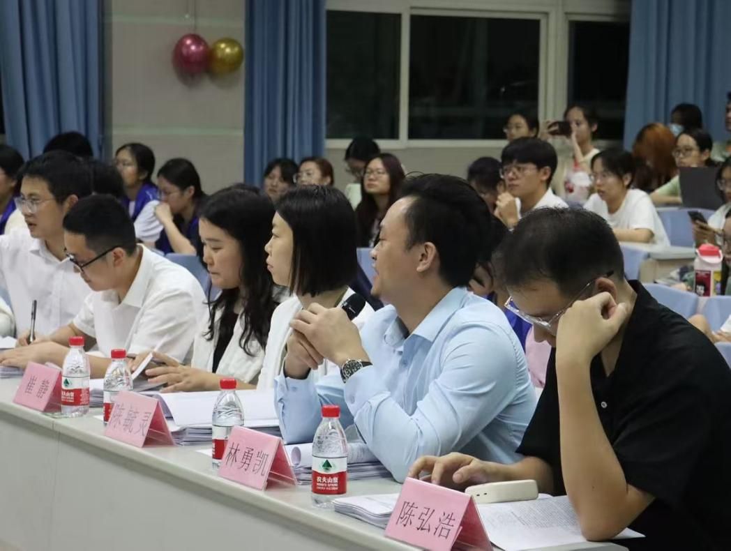 在主持人简要介绍了本次院内选拔赛的背景及比赛流程后,十一支队伍按抽签顺序依次上台进行路演和答辩。这十一支队伍通过条理清晰的PPT演示,结合生动详实的数据,深入浅出地介绍了项目内容,落落大方地展示出了各自的作品。路演结束后,在紧张的答辩环节中,面对评委老师们的提问,选手们沉着冷静应对,展现出扎实的专业知识功底和敏捷的思维能力,赢得了评委们的认可。在评委点评环节,余翔、崔静和林勇凯三位老师依次为本次选拔赛进行了精彩的点评。他们充分肯定了每支参赛队伍在比赛过程中所付出的努力以及突出的临场表现。同时,三位老师也一针见血地指出了答辩队伍项目存在的问题,并给出极具针对性和建设性的改进建议,助力同学们进一步打磨项目,提升科研水平,在学术探索之路上走得更稳更远。