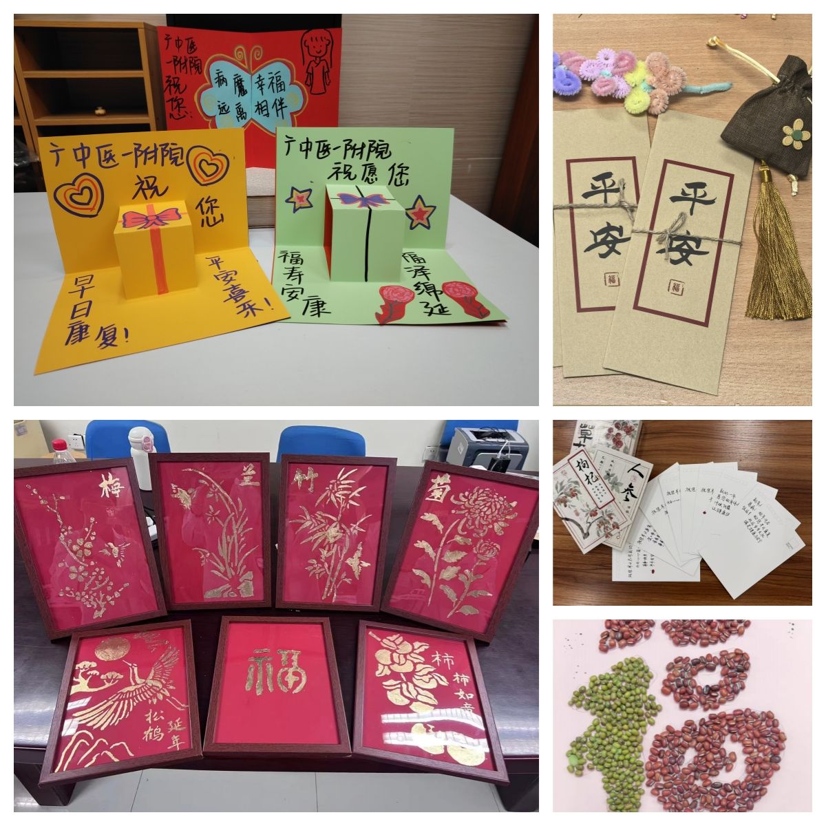 七天时光里,志愿者们举办了丰富多彩的病房活动。肿瘤中心的科普讲堂与座谈会为患者提供了交流抗癌经验的平台;乳腺科室的手作香囊与围巾编织给压力之下的女性患者们带来心灵的平静,舒展生命的枝桠;儿科病房里时常传来读故事的抑扬顿挫和做游戏的欢声笑语;针推康复中心里,志愿者耐心帮助因疾病导致手部颤抖或握力不足的患者掌握画石膏娃娃和做“豆子拼图”的技巧,诞生了富有意义的作品;心血管一科的志愿者们精心制作蕴含美好寓意的非遗金箔画,为CCU病区的重症患者们送上祝福。这些活动舒缓了患者的心理压力,在医患之间搭建起温暖的人文桥梁。