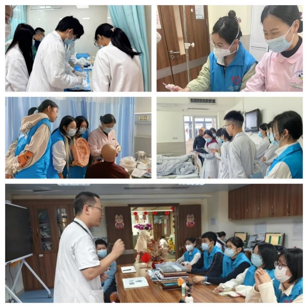 志愿者跟随老师深入病房,仔细查看患者情况,学习临床查房的基础知识。一声声询问后、一次次检查下,反映着病情疾患的发展方向;一条条报告里、一个个数值中,蕴含着妙手回春的破局之法。志愿者们不仅巩固了专业知识,还向护士护工学习到了临床护理技巧,增强了医学生的身份认同感。