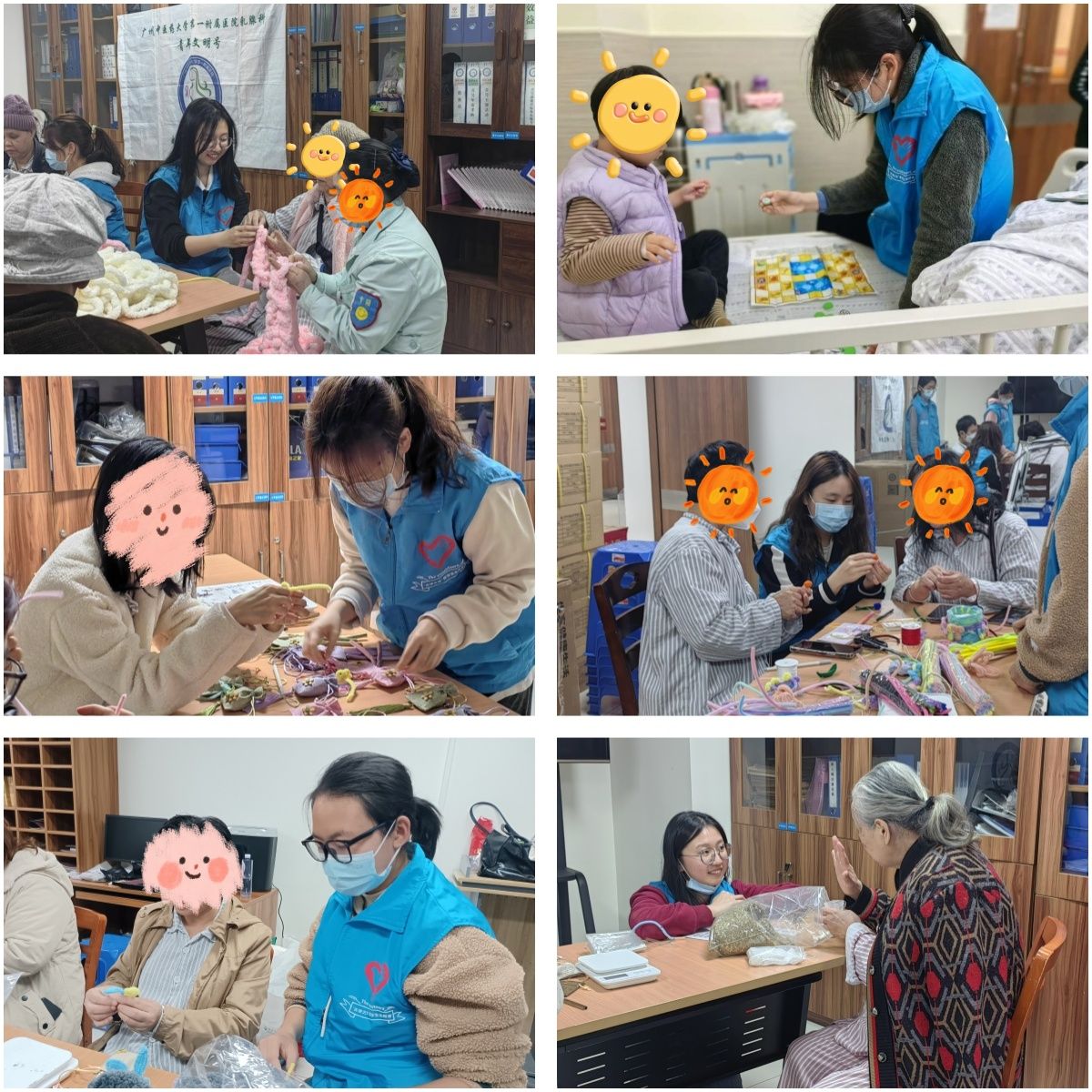 通过查房了解患者基本情况之后,志愿者们来到患者身边,聊家常、问病情,送上关怀,给予鼓励。一位志愿者在日志中写道:“我突然明白,医院里最需要的不是高超的手工课,而是愿意倾听的耳朵。”志愿者们为病房增添了活跃的气息,让身心俱疲的患者们打开了“话匣子”,得到了精神与身体的宽慰与放松。