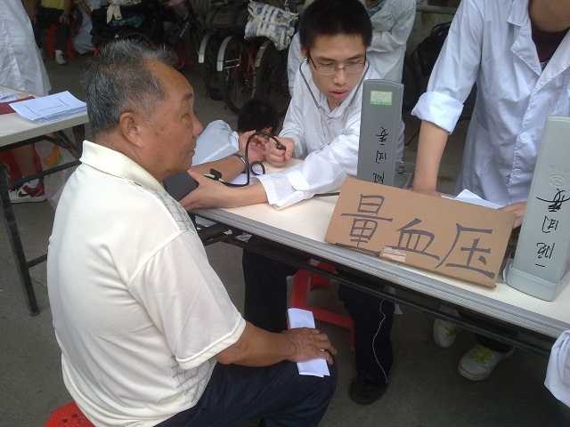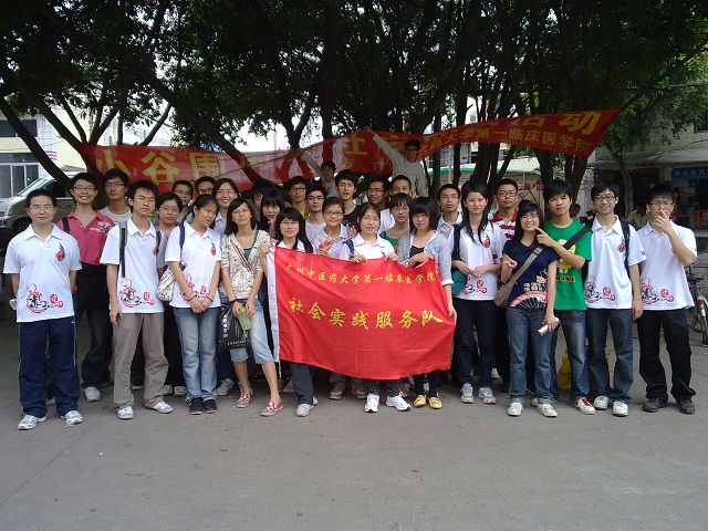 2011年4月16日上午,一院09七团支部带领本班同学32名和邀请09中西医的5名同学去大学城小谷围穗石村为当地村民义诊。我们为村民提供量血压、帖耳穴、艾灸、按摩和刮痧五种具体服务,另外还为村民们介绍春季养生的食谱并赠予我们自己印发的养生小手册,附近的村民都很乐意接受我们的服务。