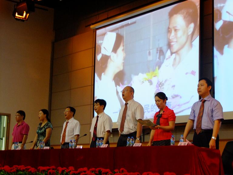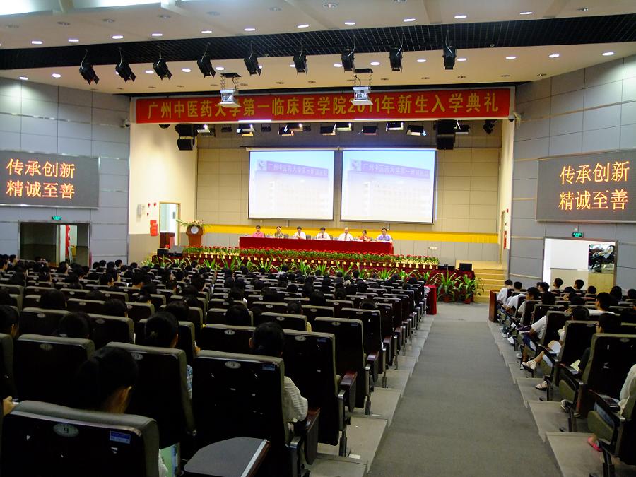 2011年9月3日上午9:30分,yl23455永利官网在大学城校区国际会议厅隆重举行2011年新生入学典礼。2011级本科生、2011级非医攻博研究生以及回迁大学城校区的2010年七年制学生共452名同学参加了典礼。一院党委书记古展群、党委副书记严晋、党委副书记郭文海,副院长张伟程,内科学教研室主任吴伟教授,温病学教研室主任吴智兵教授,教学处处长方熙茹,学院办公室、研究生办公室及学生工作办公室的老师出席了典礼。