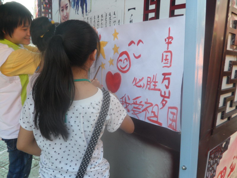 2011年10月15日,我院志愿者在卜蜂莲花西关小屋开展了主题为“我爱我的祖国”的活动,旨在让人们在国庆月中感受国庆的气氛,共同庆祝祖国62周年的生日以及建党90周年的华诞,向祖国和党献上衷心的祝福。