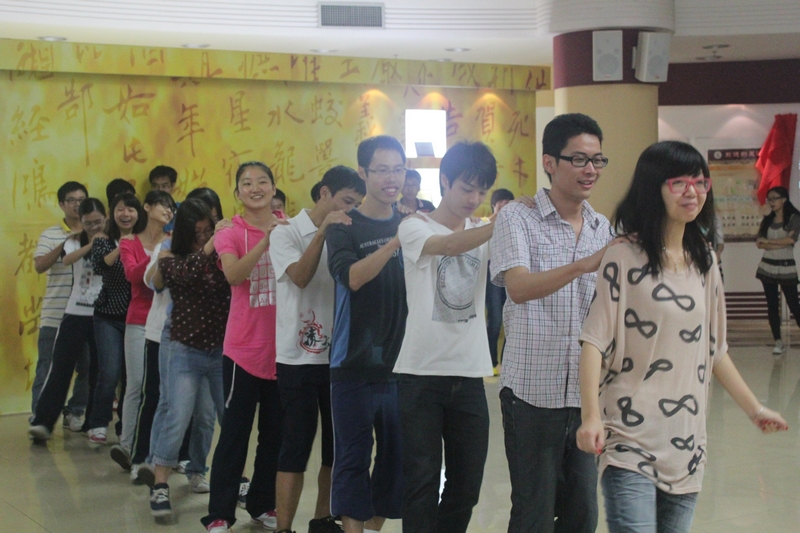 “疯狂的设计”需要团队每个成员共同想办法,投入其中,用大家的身体摆出要求的英文字母和单词;“红黄牌”要求团队成员迅速、整齐的做出反应;“拍数字“则使同学们意识到团队中任何一个成员对整体而言都是不合获取的,个人的小失误可能导致整个团队的失利。下午进行的团队游戏“七巧板”让同学们体会到了每位成员在不同团队中的作用,体验了只有团结协作才能发挥团队的最大潜力。每次游戏和体验结束后,李平老师都会让团学干部们总结和分享自己的感受,让大家更深层地理解合作与竞争的关系,更明白了团结重要性。