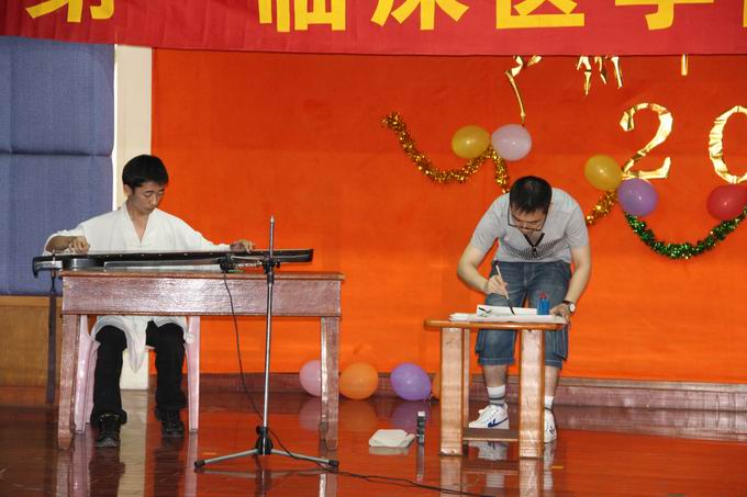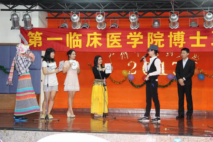 联谊会以三个学院博士合作的ipad弹唱《真的爱你》惊艳开场,现场演奏的电子琴和仿骨头材料做的吉他的伴奏,让大家感受到医学博士的超群才艺和骨科博士对专业的痴迷。接下来众博士分别献歌:《众里寻你》、《风吹麦浪》、《My Heart Will Go On》和《Burning》,使与会嘉宾在中英文的语境中充分感受了浪漫高雅的艺术品味,多才多艺的11非医攻博学生张雪淳以舞蹈《东北秧歌》将东北人民热情质朴、刚柔并济的性格特征表现得淋漓尽致。12级非医攻博的王盟同学轻抚古琴、肖幸同学现场挥毫带来的《琴·书·韵》,2011非医攻博在职博士欧晓波精湛的武术表演体现出了我院博士博雅高尚的志趣和弘扬传统文化的精神。小品《非诚勿扰》中博士们扮演的郭美美、罗玉凤、林志玲、芙蓉姐姐等网络名人纷纷亮相,男扮女装、女扮男装的造型,《非诚勿扰》的经典台词、网络名人的经典语录,江南style的经典造型和大家耳熟能详的音乐共同呈现,“笑果”频频,让大家在笑声、掌声中对“爱情是什么”有了新的思考;获得首届国家研究生奖学金的博士代表的经验分享则让大家振奋精神,激发了博士们奋勇拼搏的正能量,互动游戏让同学们怦然心动,高中奖率的抽奖让大家眼里充满了期待……联谊会节目精彩纷呈,大家都喜笑颜开,沉浸在非常欢乐的气氛中。