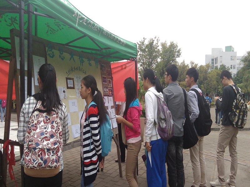 2015年12月2日,yl23455永利官网学生分团委在大学城药王山下举办了“感恩大体老师系列活动”之三行情诗作品展。