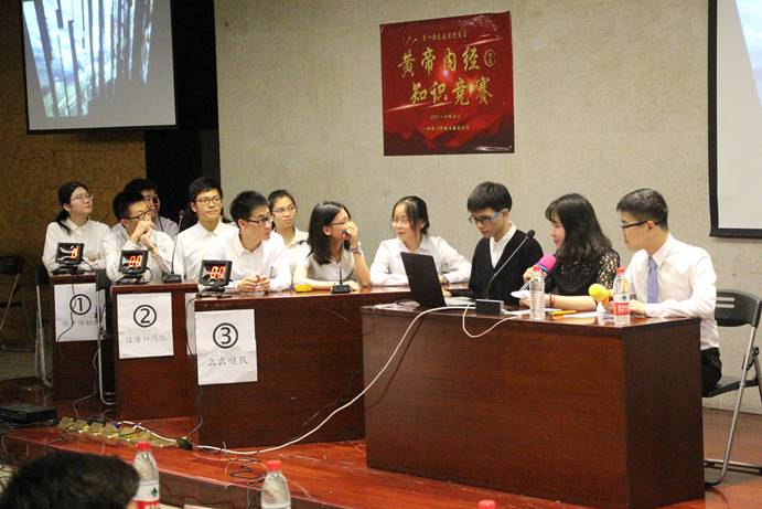 经过第一轮的笔试初赛,共有18名选手晋级本次决赛,囊括了我院高中低各个年级的学生,决赛将18名选手随机分为六支队伍。决赛分为必答题、猜词题、抢答题三个环节,考核内容为中医药经典——《黄帝内经》,比赛所用题均由广州中医药大学内经教研室提供。比赛过程竞争激烈,各支队伍都凭借良好扎实的知识基础在场上“斗智斗勇”,掀起一浪盖一浪的高潮。最终,由2014级中医2班的李天顺,张涛涛,熊舒娅同学组成的“上古天真”队斩获了冠军。