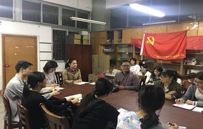 2018年3月14日,一院13本科中医党支部为学习《中国共产党第十九届中央委员会第二次全体会议公报》(以下简称《公报》)于三元里9栋会议室集中召开会议。院党委张念樵副书记、支部武夏林书记在内的支部34名成员出席了本次会议,会议议程包括:学习《公报》内容、查摆支部问题及讨论整改事项。