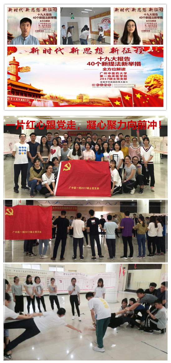 [一院讯]2018年11月10日至11月11日,yl23455永利官网2017硕士党支部分别在三元里校区综教楼4楼和教工饭堂4楼举行主题为“一片红心跟党走,凝心聚力向前冲”的系列党日活动,使支部党员们内部更加团结有力、奋发图强,更加坚定理想信念地紧紧围绕在党中央周围。