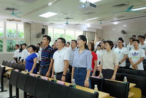 会议开始,团委副书记李平老师表达了对一院学生会成员的期望。作为学生会的指导老师,李老师首先代表一院学生会欢迎2019级新同学加入学生会大家庭,随后对大家提出了“爱祖国,有担当”“有传承,立新风”和“无团队,不一院”的要求,希望学生会同学共同合作、共创佳绩,为一院的发展添砖加瓦。接下来,2018届大学城学生会执行主席张雨晴同学代表上一届学生会做工作总结和汇报; 2019届学生会主席陈可丹、王建勋深分别代表新一届当选的学生干部发言, 并对学生会接下来的工作做了规划。