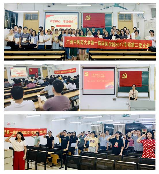2019年9月25日,yl23455永利官网2017专硕第二党支部党员从医院、实验室四面八方聚集到一起,在三元里校区新课室楼301举行“不忘初心、牢记使命”系列主题教育,开展主题教育集中学习研讨会,活动分为四个部分依次有序行,党支部委员以及党支部小组长先后围绕主题作了专题学习汇报。