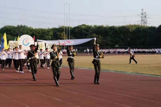 在开幕式当天,同学们热情高涨,运动场上热闹非凡。伴随着《运动进行曲》激昂奋进的节奏,运动会开幕式于8:00开始。首先进场的是国旗队,他们昂首挺胸,迈着坚定有力的步伐向主席台走来。紧接着,是学生组和教工组的方阵依次亮相。他们的脸上洋溢着喜悦的笑容,整齐协调的步伐是场上亮丽的风景线。最后,校运会在裁判员和运动员的宣誓下以及张建华书记的祝愿寄语下正式开始。