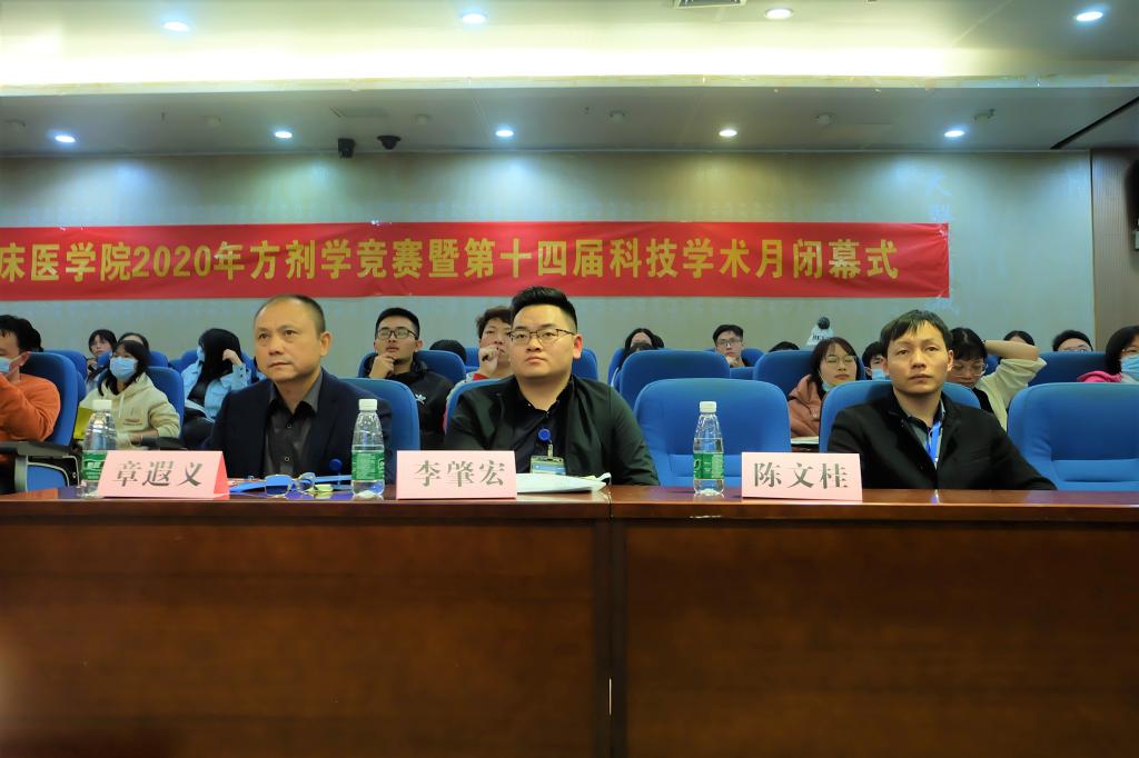 12月7日晚七点整,yl23455永利官网2020年方剂竞赛暨第十四届科技学术月闭幕式在一附院门诊楼七楼多功能会议厅举行。yl23455永利官网党委章遐义副书记,方剂学教研室全世建主任、施旭光教授、黎同明教授,学工办李肇宏副主任、陈文桂老师出席了本次活动。