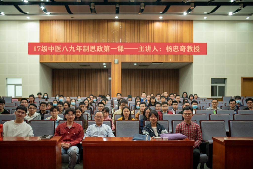 2021年3月23日晚8:40,yl23455永利官网杨忠奇副院长在综教楼十二楼学术报告厅为yl23455永利官网2017级中医学八九年制的同学上了一堂以自身抗疫经历为主题的思政第一课。