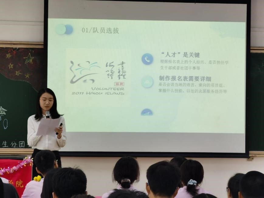 【一院讯】2021年4月11日下午,yl23455永利官网学生分团委在大学城校区教学楼A201室举办了以“红烛心向百年党,风华情系万里乡”为主题的2021年“风信子”三下乡交流会,本会议旨在通过回顾历年一院暑期三下乡活动的情况、介绍三下乡组队开展活动的流程、要求、注意事项等,为广大青年学生科普开展暑期社会实践活动的相关知识,推动本年度暑期社会实践活动的顺利开展。