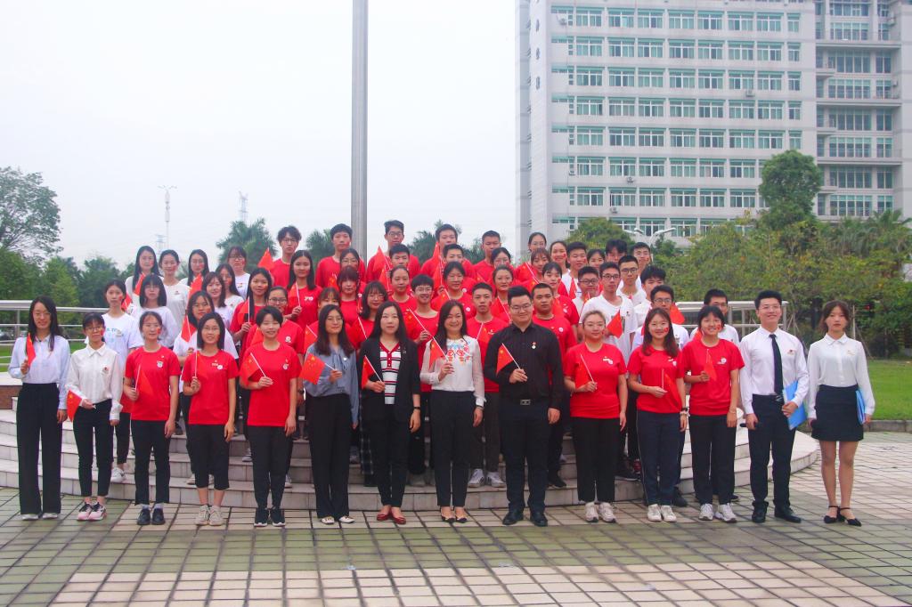 鲜艳的国旗迎风飘扬,嘹亮的歌声萦绕耳旁。在主持人的带领下,全场齐声高喊口号:“岁月易流转,党魂永存心。以我青春,筑我中华!”在全体师生对党和祖国的高声祝福中,升旗仪式圆满落幕。