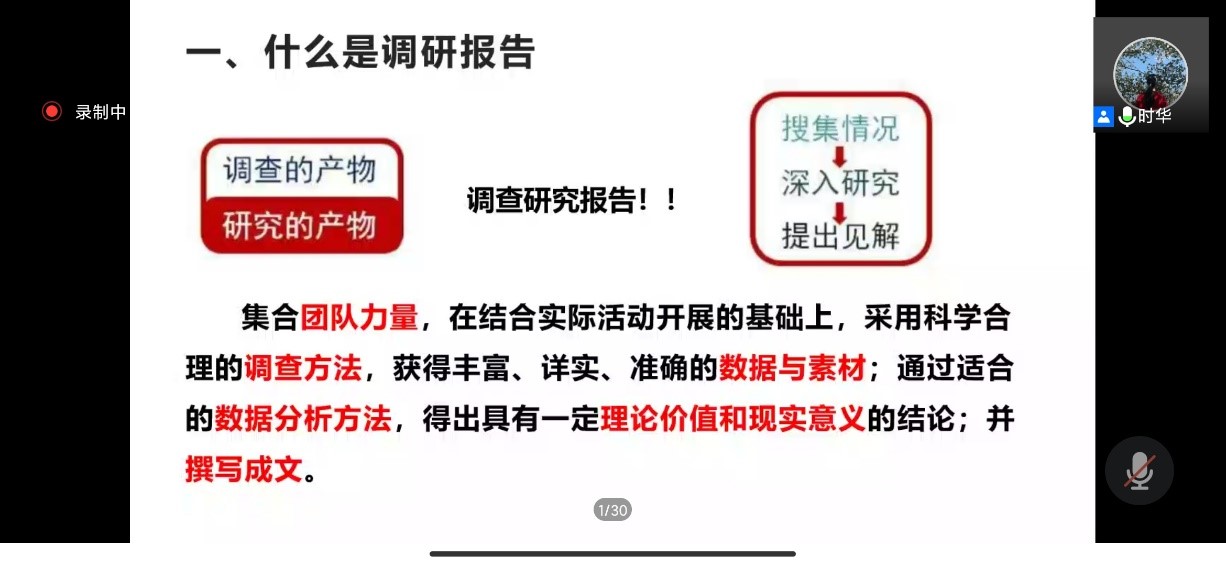 首先,黄时华老师从开展社会调研的研究方法、数据分析、报告撰写等方面进行讲解,黄老师不仅为同学们普及了社会调研中一些基础性的概念问题,还通过全国百篇优秀三下乡调研报告等实例深入浅出地为同学们讲解了如何更好地选用研究方法、更有效地开展访谈、更高质地进行数据统计和报告撰写。同学们纷纷表示通过黄老师的培训,大家终于在开展调查研究方面正式入门了。