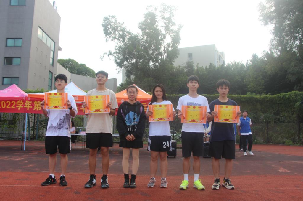 面对下午的赛程,同学们热情不减,积极投入比赛。男子200米决赛、女子200米决赛等比赛,将比赛气氛推向高潮。同学们站在终点处为运动员呐喊助威,欢呼声、赞叹声交织一片。随着最后一项比赛女子4×400接力的结束,院运会进入了尾声。闭幕式上,学工办陈小波、南海伦、何诗诗三位老师分别为田径项目获奖同学、趣味比赛项目获奖同学以及获奖班级颁奖。学生们一同欢呼,分享胜利的喜悦。最后,工作人员共同拍摄合照,第十届院运会正式落下了帷幕。