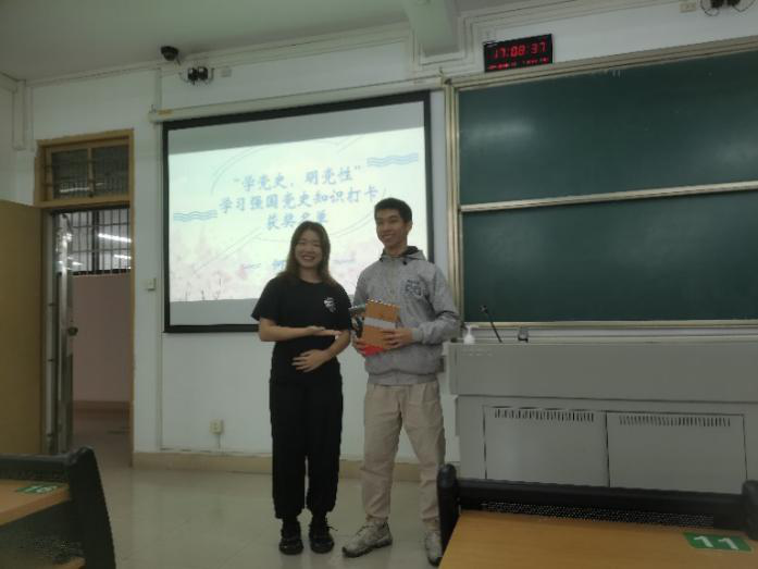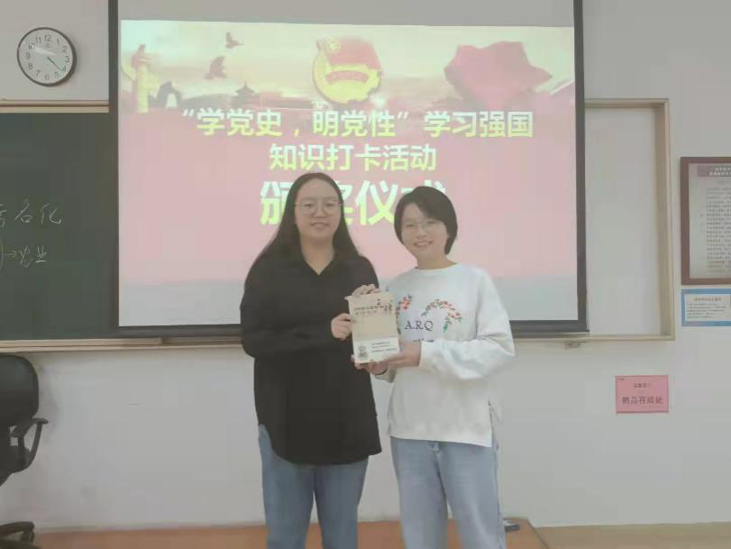 2021年10月27日至10月29日,yl23455永利官网大学城学生党支部“学党史,明党性”学习强国知识打卡活动颁奖仪式在各班顺利举办。为庆祝中国共产党成立100周年,深入贯彻习近平总书记在党史学习教育动员大会上的讲话精神,加深递交入党申请书的同学们对党史的了解和认识深度,我院大学城学生党支部举行学习强国党史学习打卡活动,希望用青年人的话语将党的理论和实践在青年人中传扬开来。从4月9日开始,参加打卡活动的同学们按照格式(话题+学习心得+截图)将学习内容上传至易班微社区,每周打卡次数下限为三次,无上限要求。