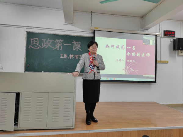 2022年3月29日晚19:00,yl23455永利官网林丽珠副院长以《如何成为一名合格的医师》为题,采用线上线下相结合的方式,在综教楼306教室借助网上直播的方式,为一院2019级全体同学讲授了一堂精彩的“思政第一课”。
