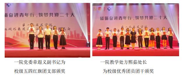 除了精彩的节目演出,晚会还设置了表彰环节。在中国共产主义青年团成立一百周年之际,我院对本学年表现优异的集体和个人进行表彰,激励我院学子锐意进取,自强不息。此外,我们还邀请了全国青马班学员简心悦、科技学术之星金婷、黄英杰、全国向上向善好青年严倩上台进行经验分享,他们结合自身成长的经历,勉励一院学子热爱所学专业,牢记医学生的初心使命,练就过硬本领,将自身命运与国家、时代命运接轨,争做中医药传承创新发展的践行者,为新阶段中医药事业振兴发展凝聚奋进力量。