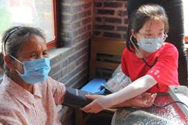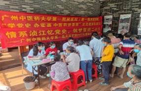 义诊开始,来自广州中医药大学第一附属医院脾胃病科、心血管科、骨科、针灸推拿科的4名医生为村民们开展健康咨询、疾病诊断,以及具有中医特色的点棍治疗、火针治疗等。而学生志愿者们也毫不示弱。看!他们量血压时专注的神情、推拿时专业的手法、脊柱侧弯筛查时娴熟的动作、赠药时耐心的解说,收获了村民们满意的笑容。86岁高龄的张奶奶听闻我们的到来,顶着烈日,拄着拐杖也赶了过来。在接受了师生们耐心细致的医疗服务后,她竖起了大拇指连声说道“年轻人好啊,你们来了好啊”。 村民们的认可也仿佛给师生们送来了炎炎夏日的缕缕清风。