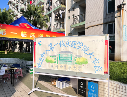 上午8时许,一院新生陆续准备入校。一院学生会分别在校园入口、大本营、D栋宿舍楼、E栋宿舍楼、第二饭堂、K栋宿舍楼设置了新生服务点。校园入口的志愿者从新生家长们手中接过大件行李,并指引新生们按照规定的防疫程序进入校门,前往一院大本营。大本营工作人员协助新生办理各种手续,并送上精美的一卡通与资料袋。其后,各服务点的搬运志愿者前后接力,确保将新生行李一件不落地安全送达新生宿舍。