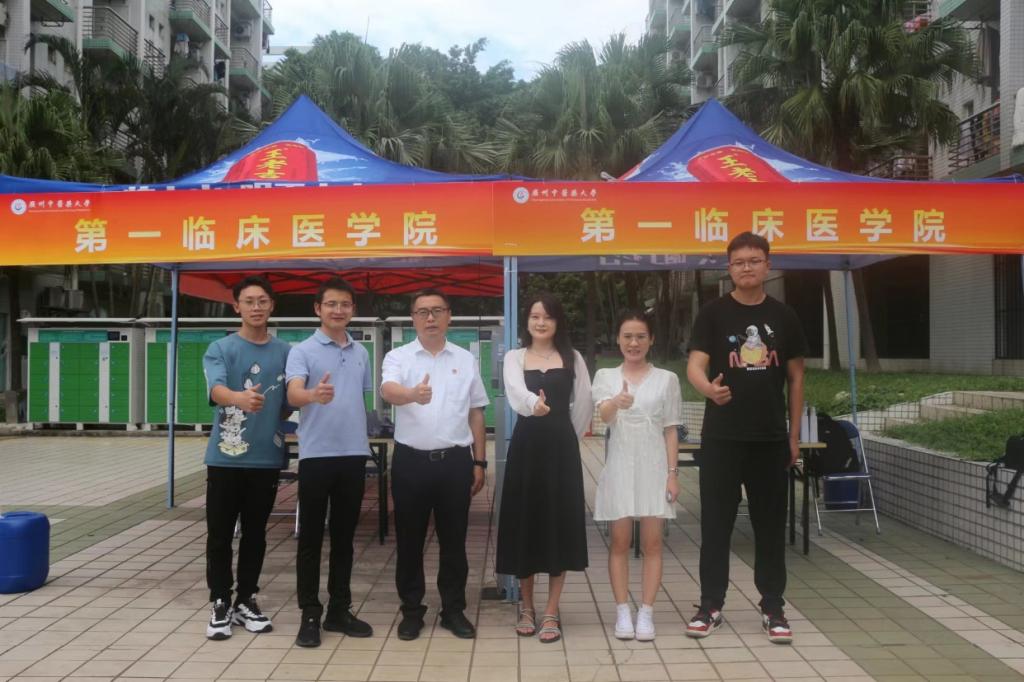 迎新期间,学院(医院)党委李强书记、章遐义副书记、学院分团委池思晓书记率新生辅导员来到报到点亲切慰问现场工作人员,检查了解迎新工作总体情况,从严落实疫情防控、多层次完善迎新服务等方面作出细致指导,同时与2022级新生亲切交流,希望新生们尽快适应大学生活,积极进取,不负韶华。最后,学院领导老师嘱咐大家做好防暑、防疫,并鼓励大家以最热情的态度,最周到的服务迎接2022级新生。