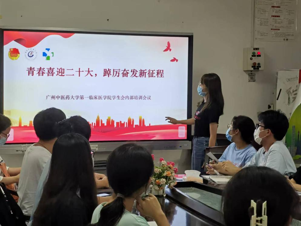 为深入贯彻落实《关于学联学生会工作人员改进作风服务同学的若干规定》的文件精神,持续提升学生会工作人员的政治素质,加强作风建设和能力建设,打造“清新阳光学生会”,我院于2022年10月10日17:20在护理楼104举办了以“青春喜迎二十大,踔厉奋发新征程”为主题的学生会工作人员内部培训会,我院学生会全体人员及项目志愿者参加了本次会议。