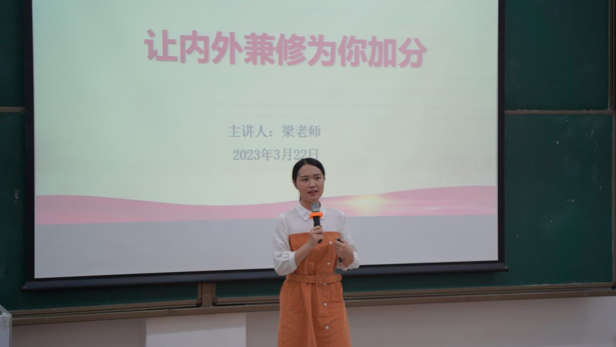 最后一个环节是面试礼仪与技巧的培训讲座,梁嘉敏老师以自己的经历为例向同学们介绍就业礼仪的次序性,并告知大家礼仪学习内外兼修的三种境界:形养以感目、音养以感耳、意养以感心。讲座期间,学生们积极踊跃提问,梁嘉敏老师从理论与实践两方面对同学们提及的问题进行悉心解答。